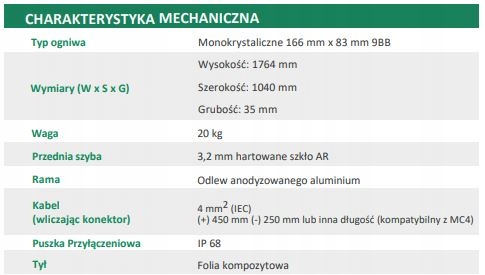 - Соединительный кабель: 4 мм², совместим с MC4