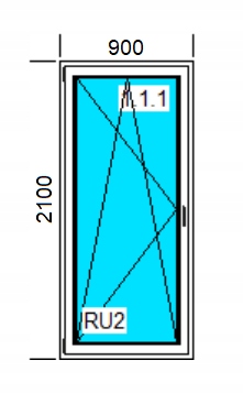 окно ПВХ с размерами 900 x 2100 мм, сдержанность