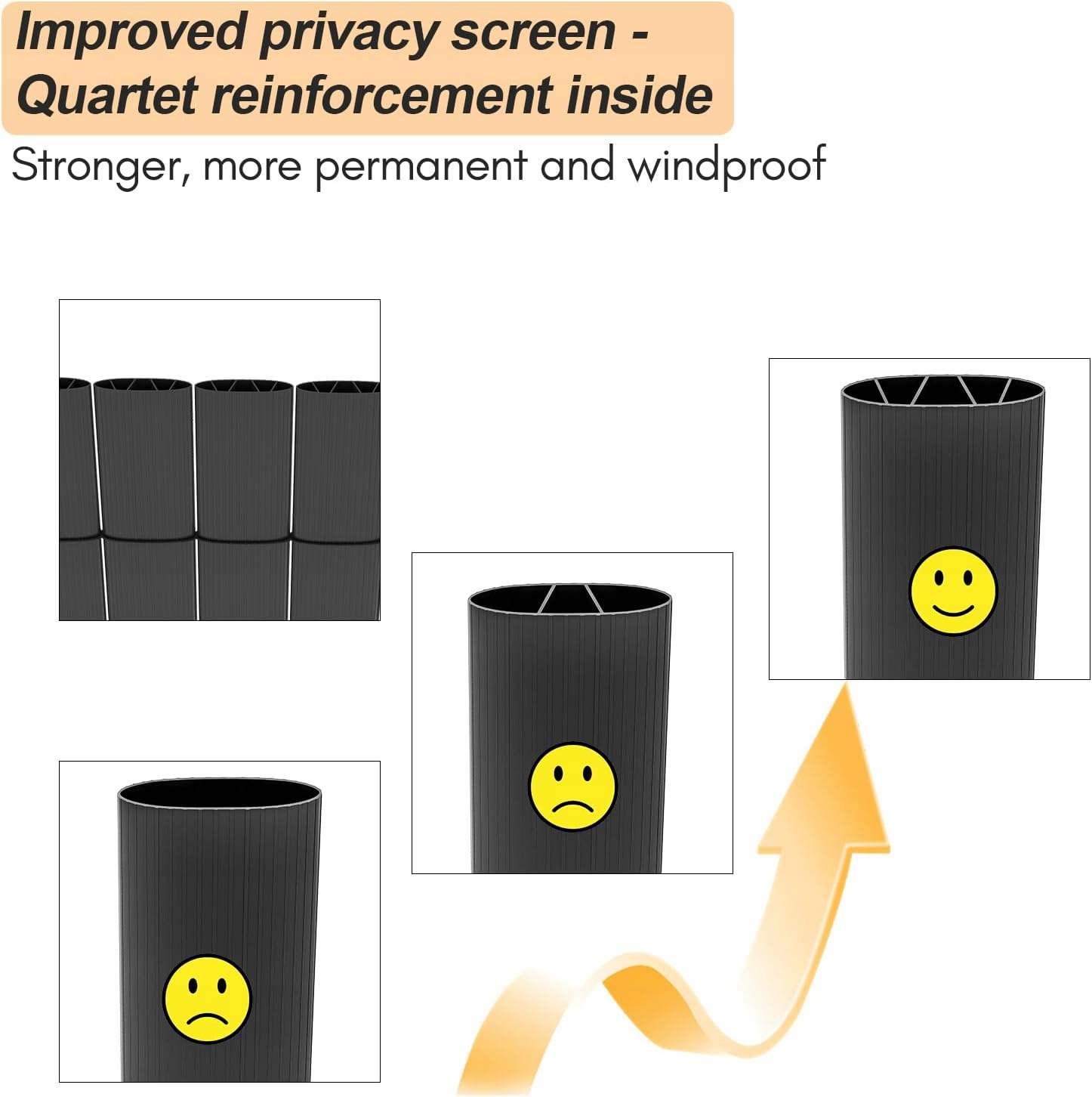 Маскировочный чехол изготовлен из ПВХ, высококачественный проклеенный пластиковый шланг обеспечивает необходимую прочность, прочность, погодоустойчивость и погодоустойчивость. Отличная альтернатива традиционным бамбуковым/тростниковым и плетеным коврикам.