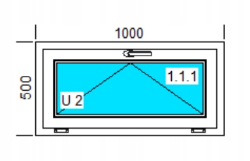 окно ПВХ с размерами 1000 x 600 мм, наклонение h1>