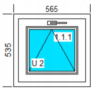 Окно ПВХ с размерами 565 x 535 мм, наклонение