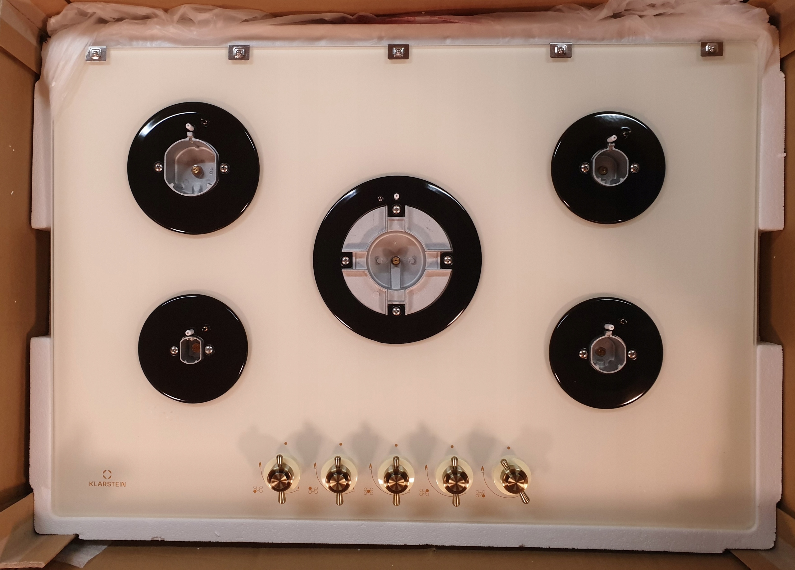 PŁYTA GAZOWA GRZEWCZA DO ZABUDOWY KLARSTEIN 5 PALNIKÓW SZKŁO KREMOWA 74CM