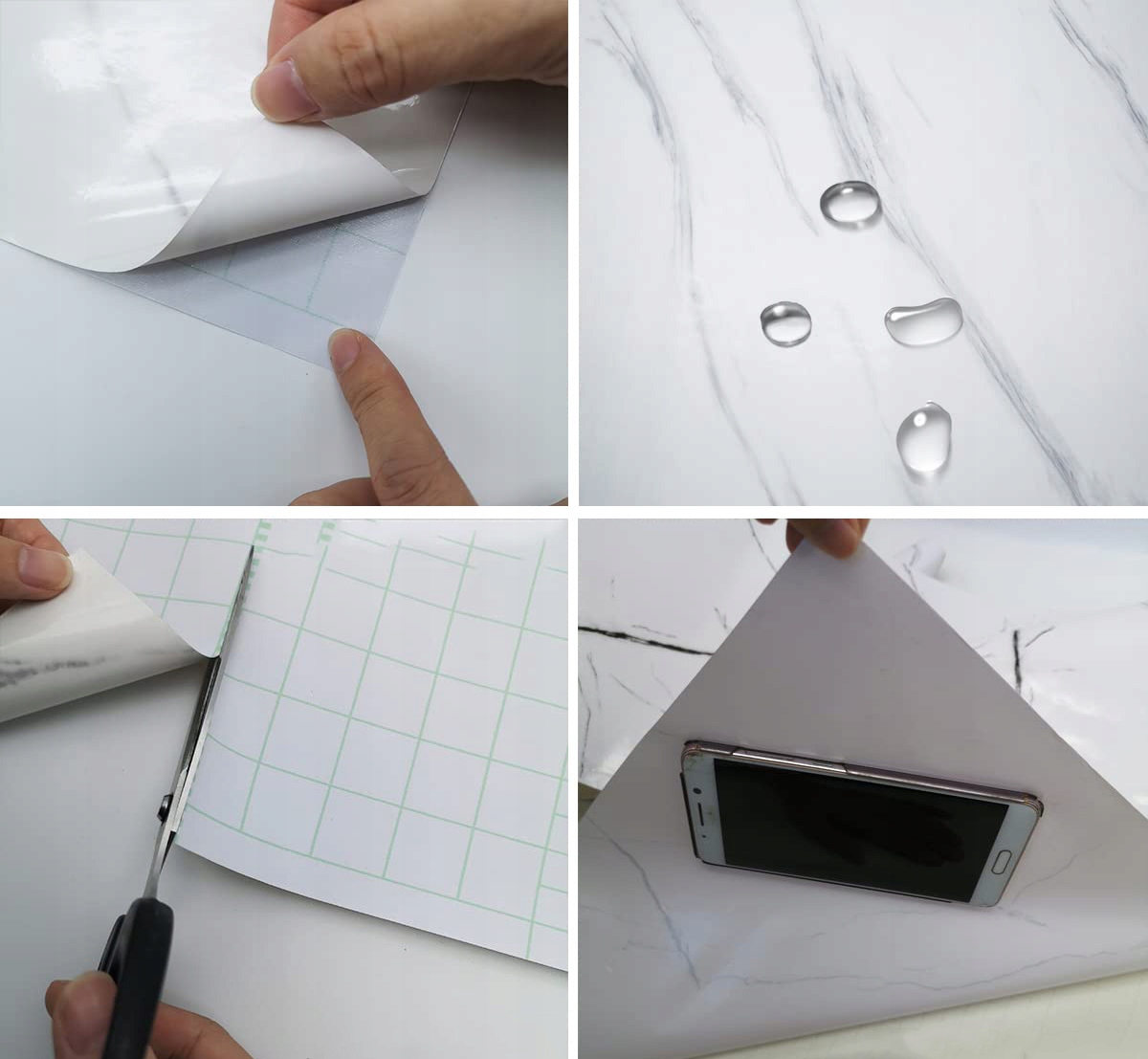 PŁYTKI SAMOPRZYLEPNE TAPETY PCV NA BLATY BIAŁY MARMUR