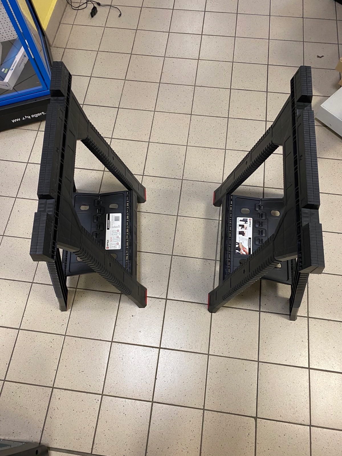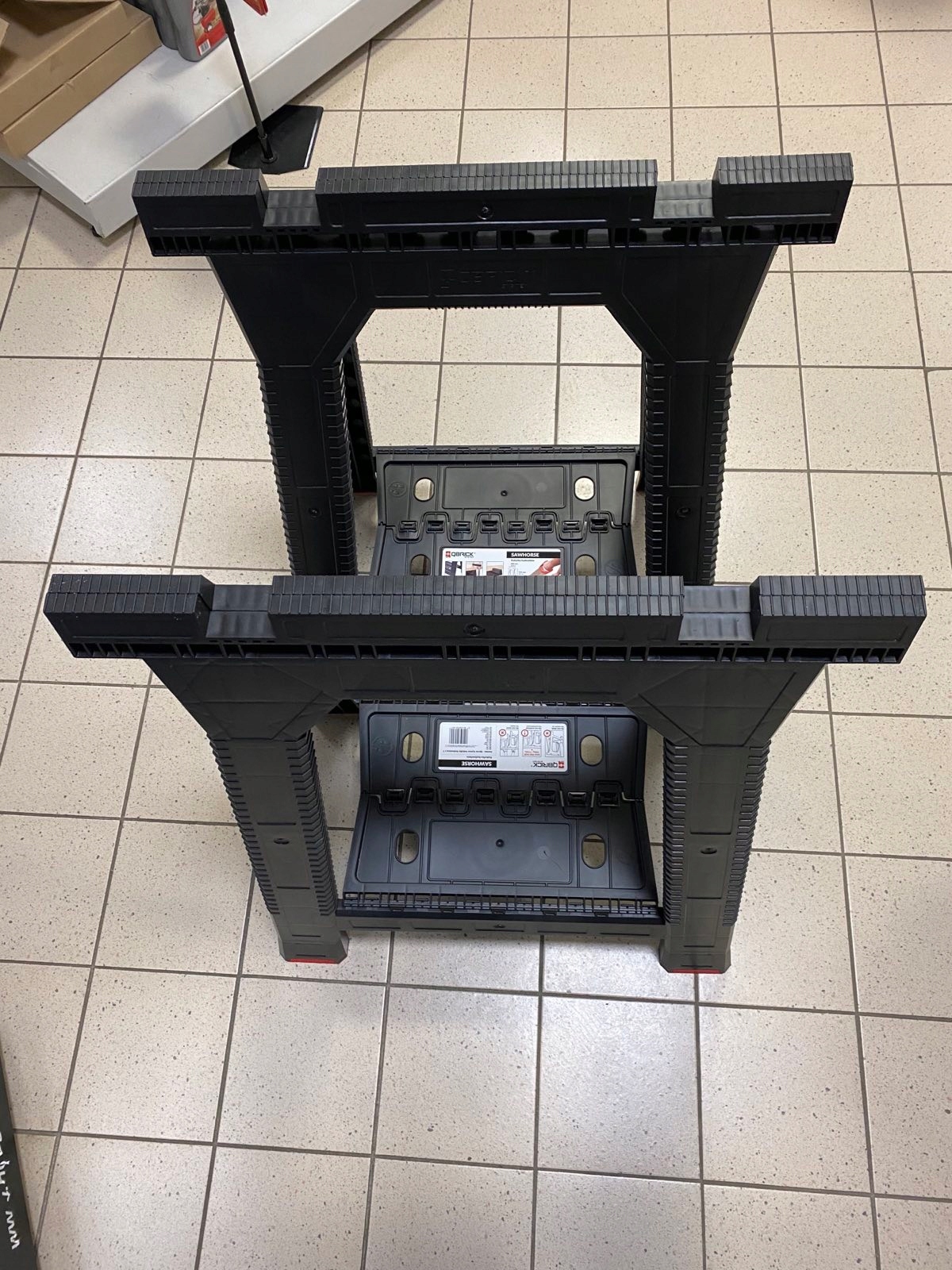 Рабочая подставка QBRICK SYSTEM благодаря усиленной конструкции ее можно использовать в качестве переносного рабочего стола QBRICK. Просто используйте две подставки для мастерских QBRICK и поместите на них столешницу, например, плиту OSB.