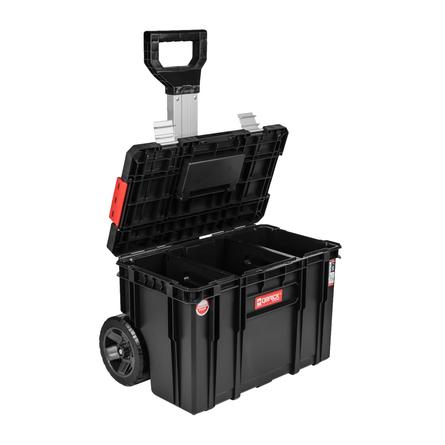 - Модульный ящик для инструментов, который является мобильной основой для сборки ДВУХ персонализированных наборов. Прочная телескопическая ручка, металлическая ось, большие обрезиненные колеса гарантируют долговечность и отличную маневренность