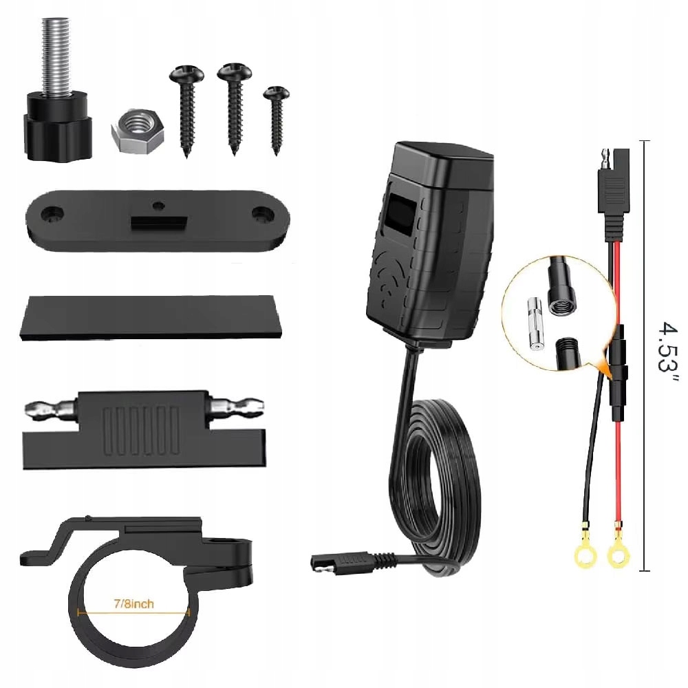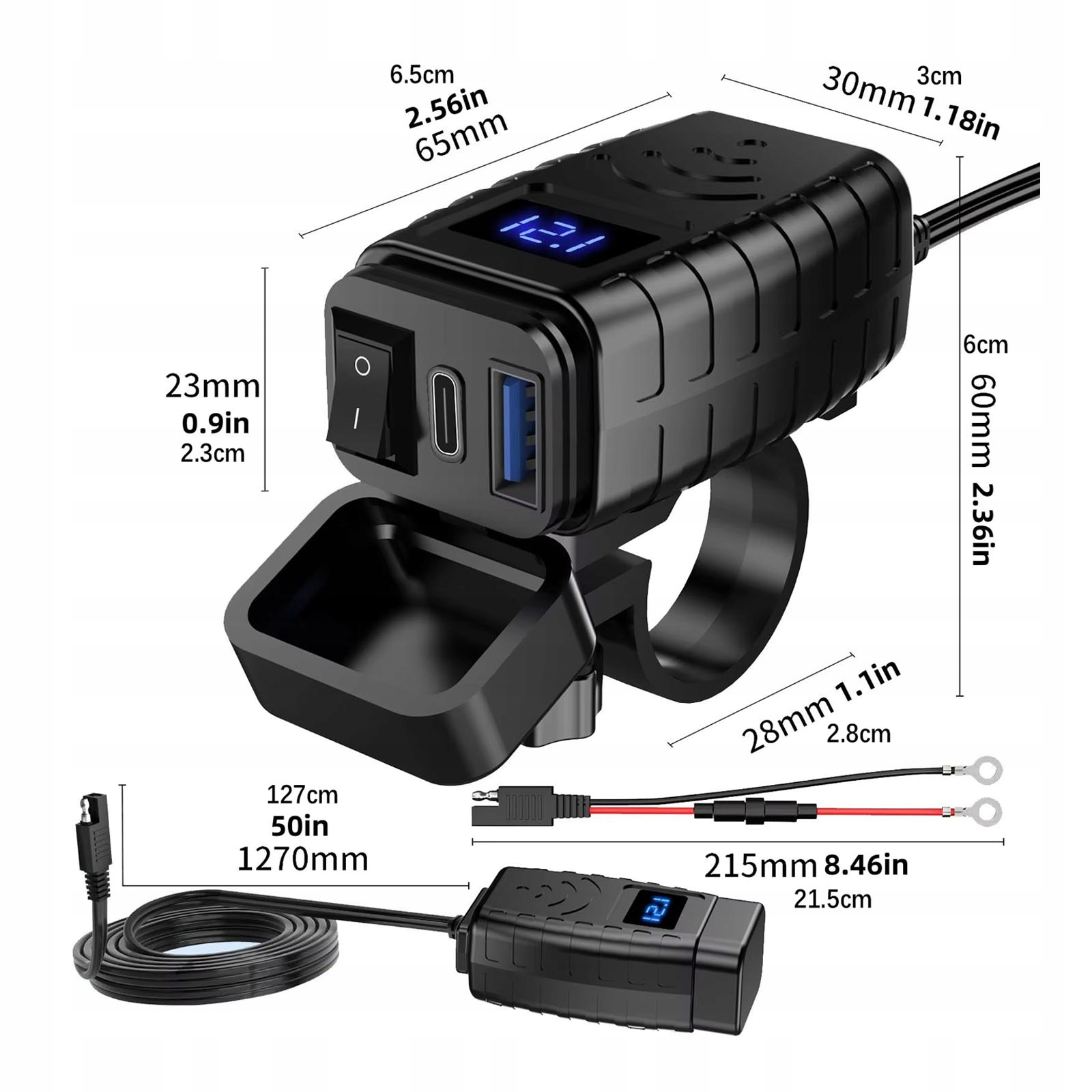 ВОДОНЕПРОНИЦАЕМОЕ ЗАРЯДНОЕ УСТРОЙСТВО USB + USB-C С БЫСТРОЙ ЗАРЯДКОЙ ДЛЯ МОТОЦИКЛА/СКУТЕРА QC 3.0 + ВОЛЬТМЕТР