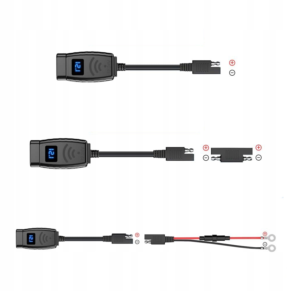 Мотоциклетное зарядное устройство QC3.0 USB и USB-C со светодиодным вольтметром 12–24 В