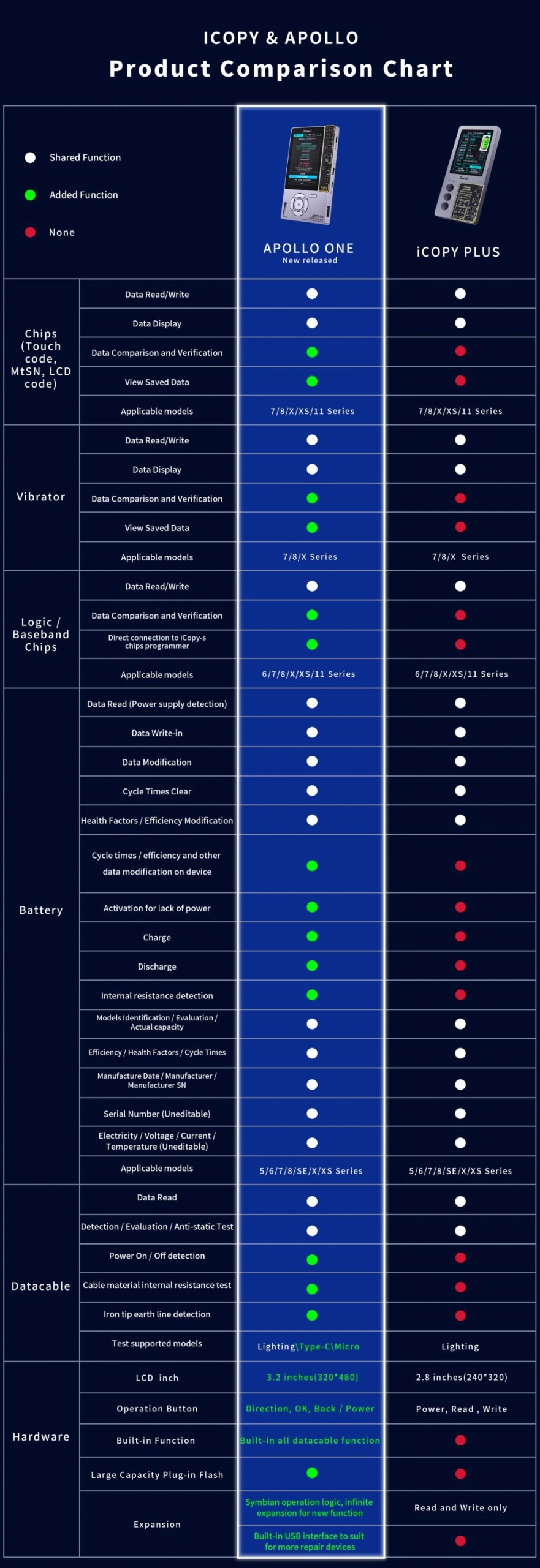 Программатор Apollo – более новая версия, имеет все функции программатора iCopy Plus и несколько дополнительных, в том числе: