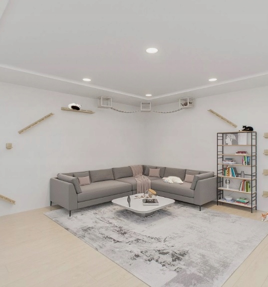 - Благодаря гибкой системе скалолазания на потолке вы можете создать отдельный рай для приключений для своей кошки. Дома, предотвращая царапину мебели и прыгать в кошках на кухонных столешницах.