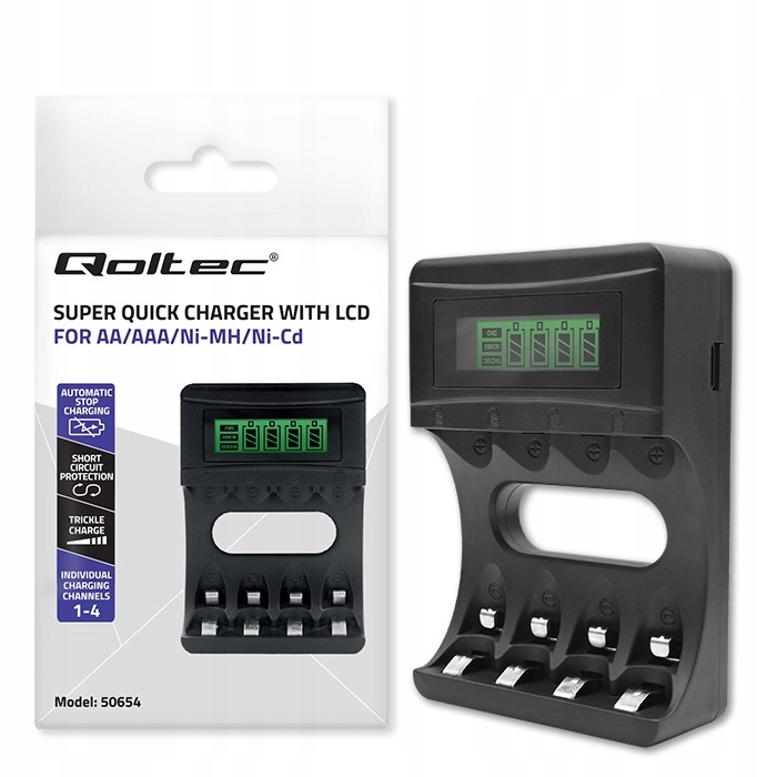 Зарядное устройство Qoltec для Ni-MH аккумуляторов типа R03 AAA R6 AA | ЖК | USB-кабель