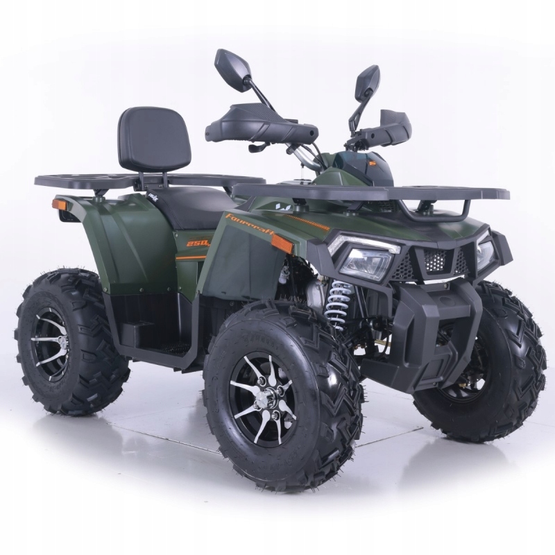 Fourcraft - это отличное мнение, крупнейшее автомобиль в своем классе, доступный на рынке. Оснащенный сильным и надежным энергетическим подразделением 250 см3, он отличный в полевых условиях и во время экономической работы. Укрепленная рамка в сочетании с очень хорошим Создание металлических соединений гарантируется на подъем до 250 кг. Автомобиль также имеет крючок в стандартной комплектации, благодаря которой Quad может потянуть трейлер . Высокое качество изготовления гарантирует комфорт вождения