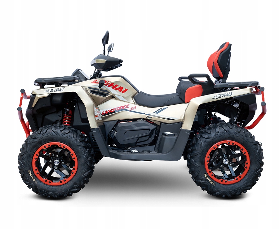 Quad Linhai Landforce 650L Pro, предлагает чрезвычайно богатый пакет оборудования, который включает в себя полностью регулируемые типы типов с повышенной емкостью, сплошные стальные бамперы на передней и задней, привлекательных восьмиконечных 14-дюймовых штук. Bulldog, алюминиевые не сокрушительные подборы для водителя и пассажира, двухколотое пассажирское сиденье с пассажирским сиденьем со спинкой или цветом. Оборудование также включает в себя электрическое рулевое управление, буксирное крюк с утверждением, лебедку 3000 фунтов, большой 7-дюймовый дисплей с матрицей TFT, композитный багажник спереди и сзади или стильные ручные крышки