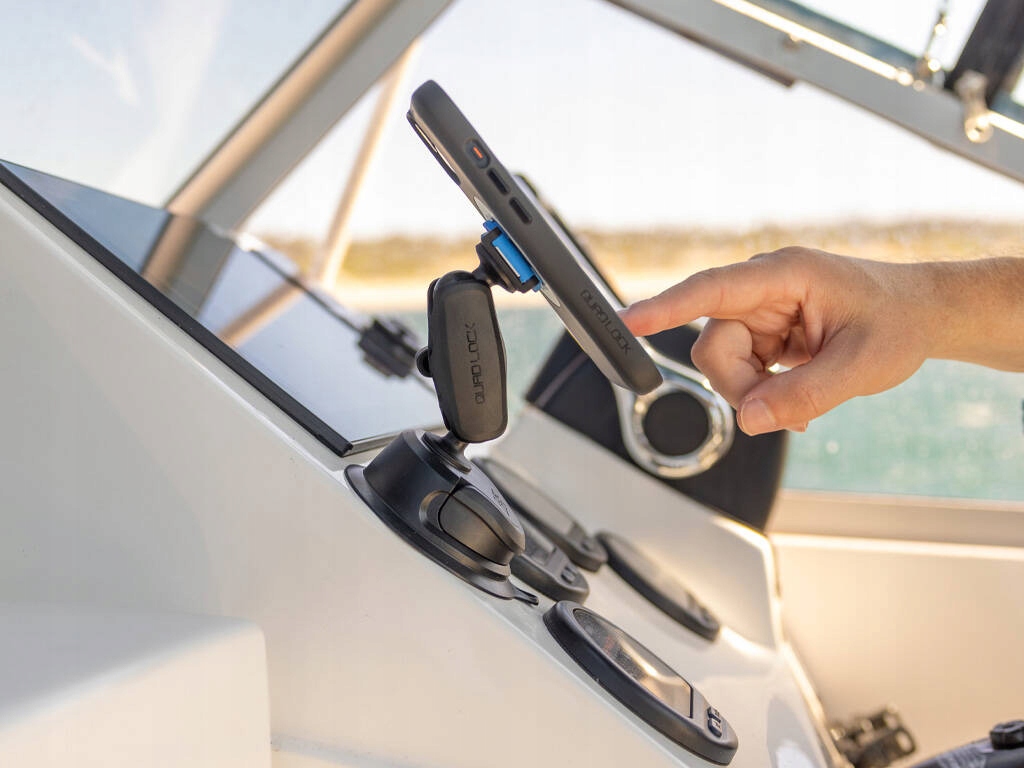 Подчеркивая всасывающую чашку Quad Lock с возможностью изменения позиции на комплексную сборку. Всасывающая чашка с рычагом облегчает быструю передачу между местами применения.