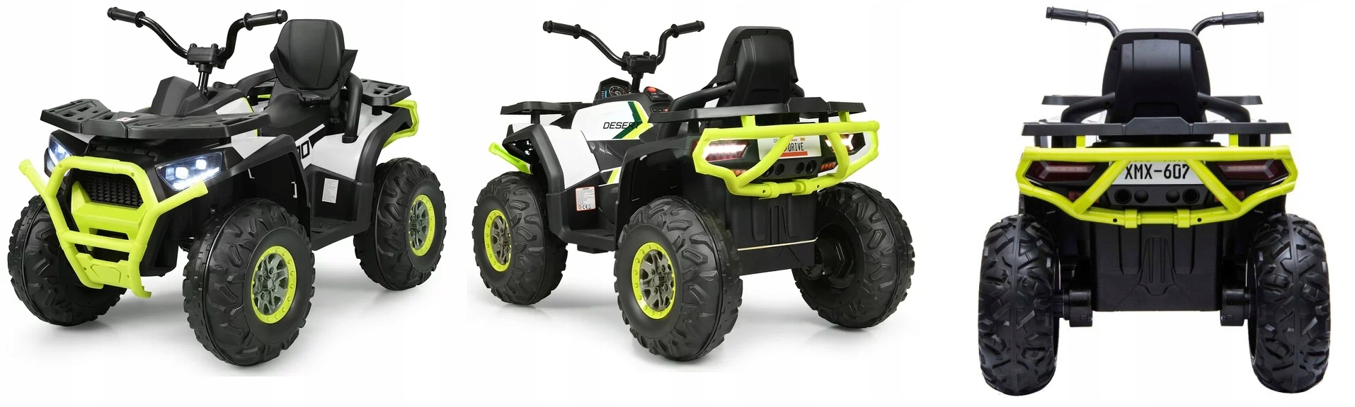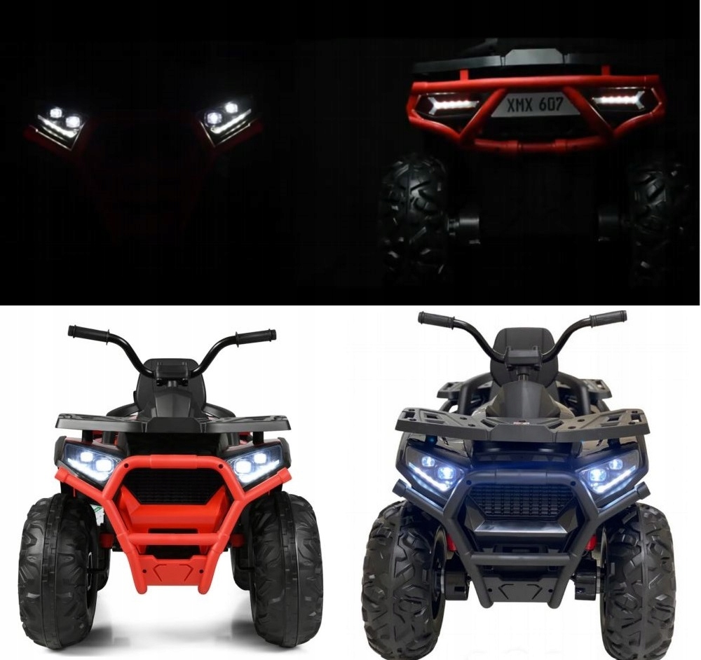 QUAD NA AKUMULATOR ATV 4X4 SKÓRA MIĘKKIE KOŁA EVA ŚWIATŁA DŹWIĘK PILOT 2.4G