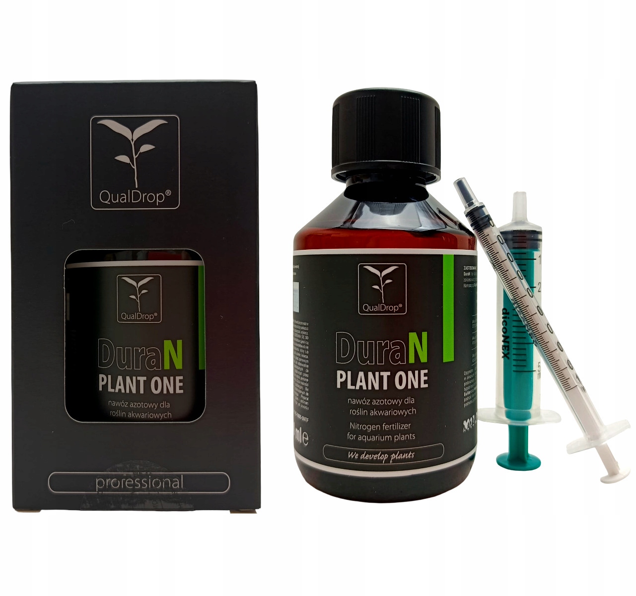 QualDrop DuraN — эффективное азотное удобрение для водных растений. Содержит сбалансированное количество магния (Mg), кальция (Ca) и небольшое количество калия (K). Он обеспечивает азот главным образом в форме нитратов NO3. Немного повышает общую жесткость GH и концентрацию калия. DuraN — отличное решение для недавно созданных, еще незрелых аквариумов и аквариумов, в которых использовались химические вещества (например, против водорослей), которые могли нанести вред полезной бактериальной флоре. Поддерживает развитие полезных бактерий в новых аквариумах и после использования средств против водорослей.