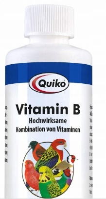 Витамин B Quiko является добавкой для всех декоративных птиц (например, канареек, попугаев, мелких экзотов и т. д.) и почтовых голубей. Quiko витамин B представляет собой высокоэффективную комбинацию витаминов группы B. Quiko витамин B предотвращает нарушения роста и обеспечивает плавный обмен веществ. Витамин B значительно повышает работоспособность, увеличивает скорость скольжения и предотвращает нервные расстройства (вращение головы).