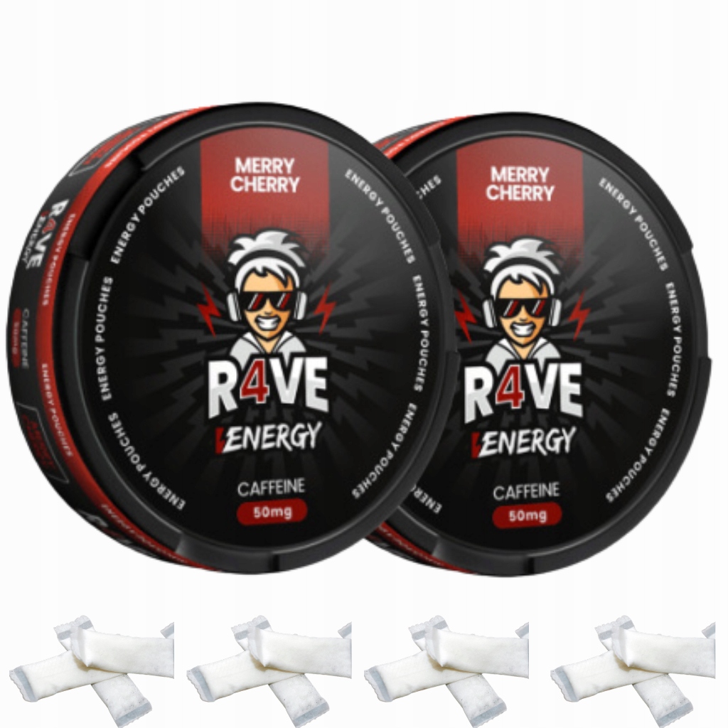 R4VE Energy 50 мг кофеїну Весела вишня Кофеїнові пакетики