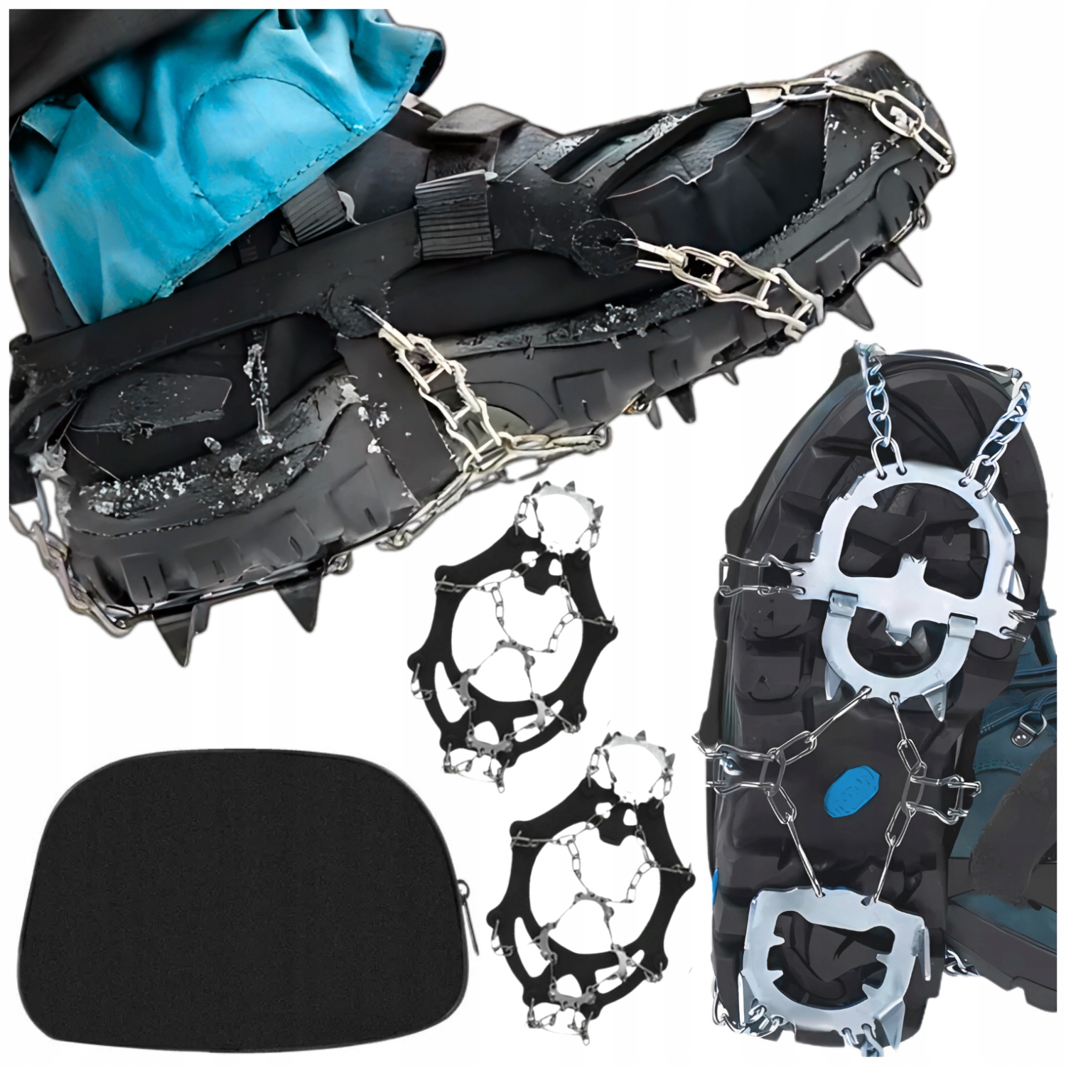 - Практическое покрытие - обувь для обуви упакована на практической обложке, застегнуто на молнии. Он маленький, поэтому он поместится в карман с рюкзаком или даже карманом брюк. Мы всегда будем иметь их с нами, когда они нам нужны. Материал: TPE / нержавеющая сталь 304 и 430; Количество зубов в 1 раке: 12; Размер: L 40-44; Толщина резины, держащая цепь: 0,4 см; Высота шипа: 1,7 см; Размеры случая: 13/18/5 см