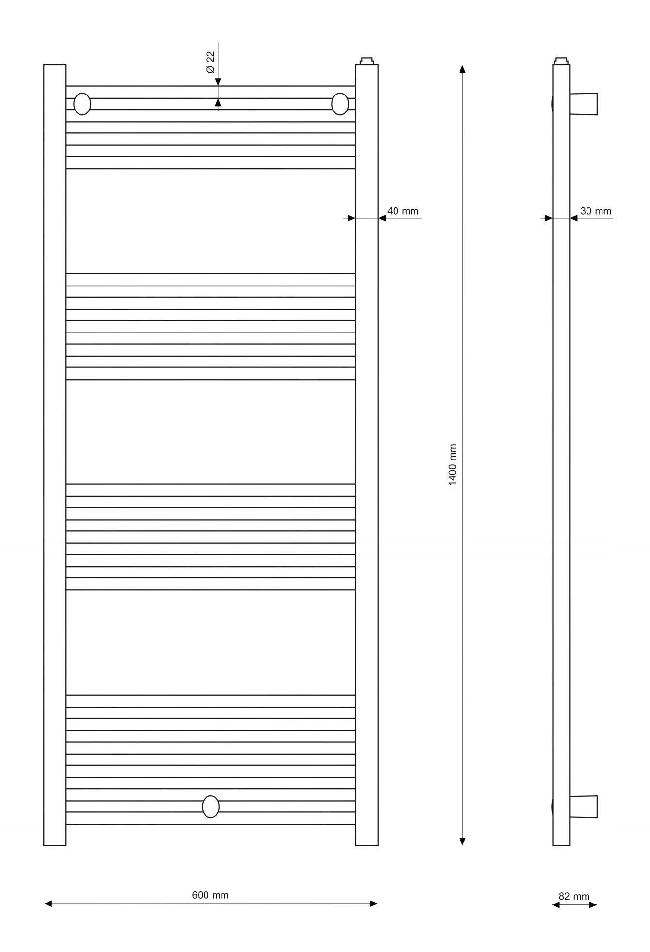 В случае радиаторов высотой 140 см монтаж осуществляется с помощью 4-х ручек, модели меньшего размера имеют 3 точки крепления – две вверху и одну внизу.