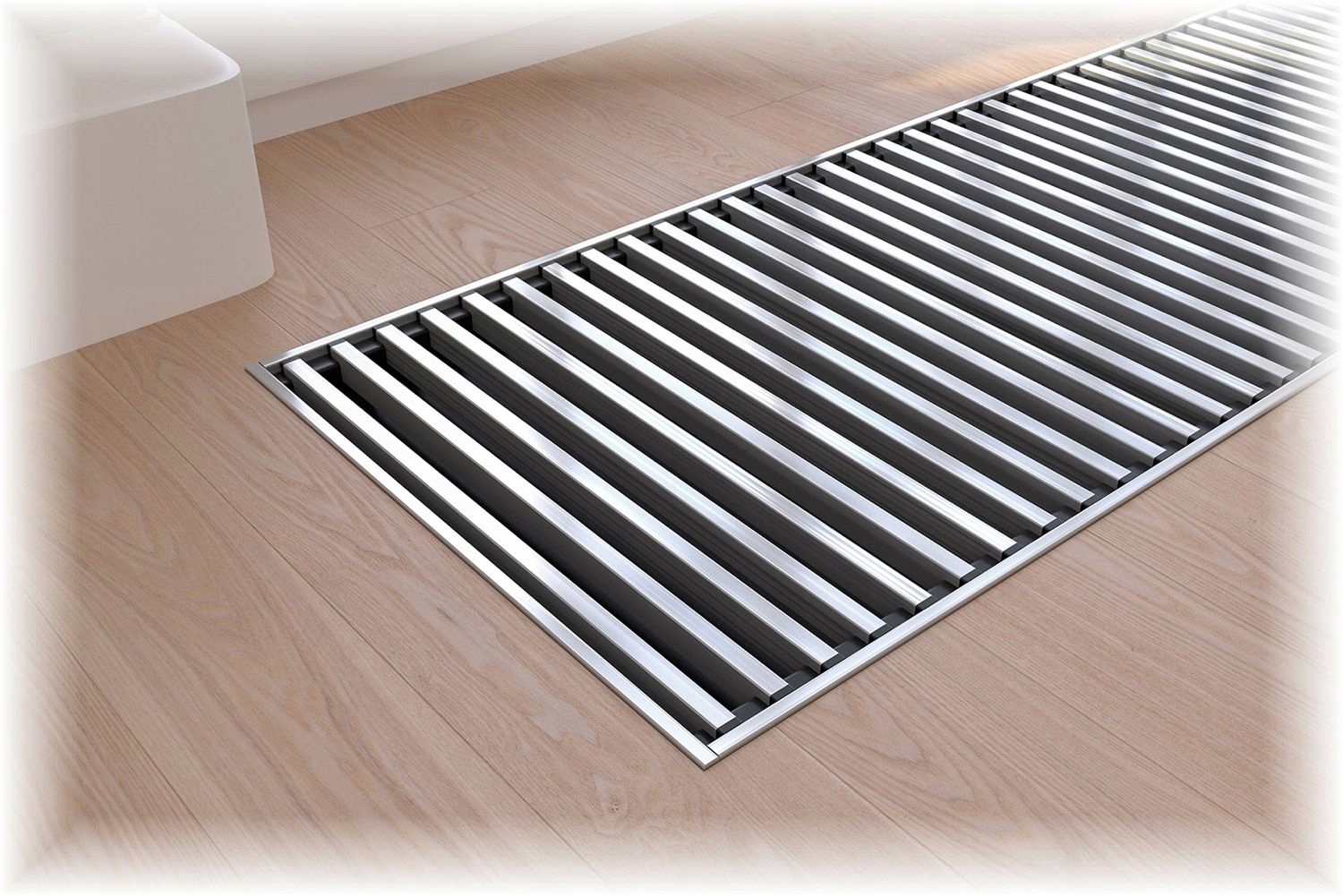 Предназначены для помещений с большими объемами и большой площадью остекления, где необходима высокая мощность отопления, а из-за недостатка места или эстетичной отделки невозможно использовать внутриканальные радиаторы без вентилятора или обычные. Их используют в жилых домах, подсобных помещениях и исторических зданиях. Установленный в полу и отделанный элегантной решеткой, гармонирующей с дизайном интерьера, радиатор практически незаметен. Радиаторы обычно монтируются рядом со стеклянными стенами, где они создают поток воздуха, защищающий помещение от попадания холода на пол. Их также можно устанавливать как угловые или дуговые радиаторы, что еще раз подтверждает их универсальность использования.