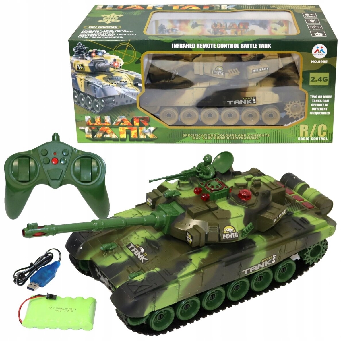 Танк - это действительно удовольствие от каждого малыша, который хочет почувствовать себя солдатом на войне в отличной бронированной машине. Представленный резервуар имеет лампы, подходящие для глаз, и звук выстрела, благодаря тому, что веселье будет полно впечатлений и эмоций. В бак с дистанционным управлением 2,4 ГГц содержится 7 каналов. Танк перемещается вверх и вниз. Хэтч вращается в 360O. Транспортное средство отражает эффект выброса во время выстрела. Резиновые гусеницы являются еще одной достопримечательностью - они не поцарапают пол, и, кроме того, автомобиль будет двигаться бесшумно. Танк поставляется в двух цветах: пустыня и зеленый. Сообщение продавцу должно быть передано предпочтительному цвету, в отсутствие информации продукт отправляется случайным образом.