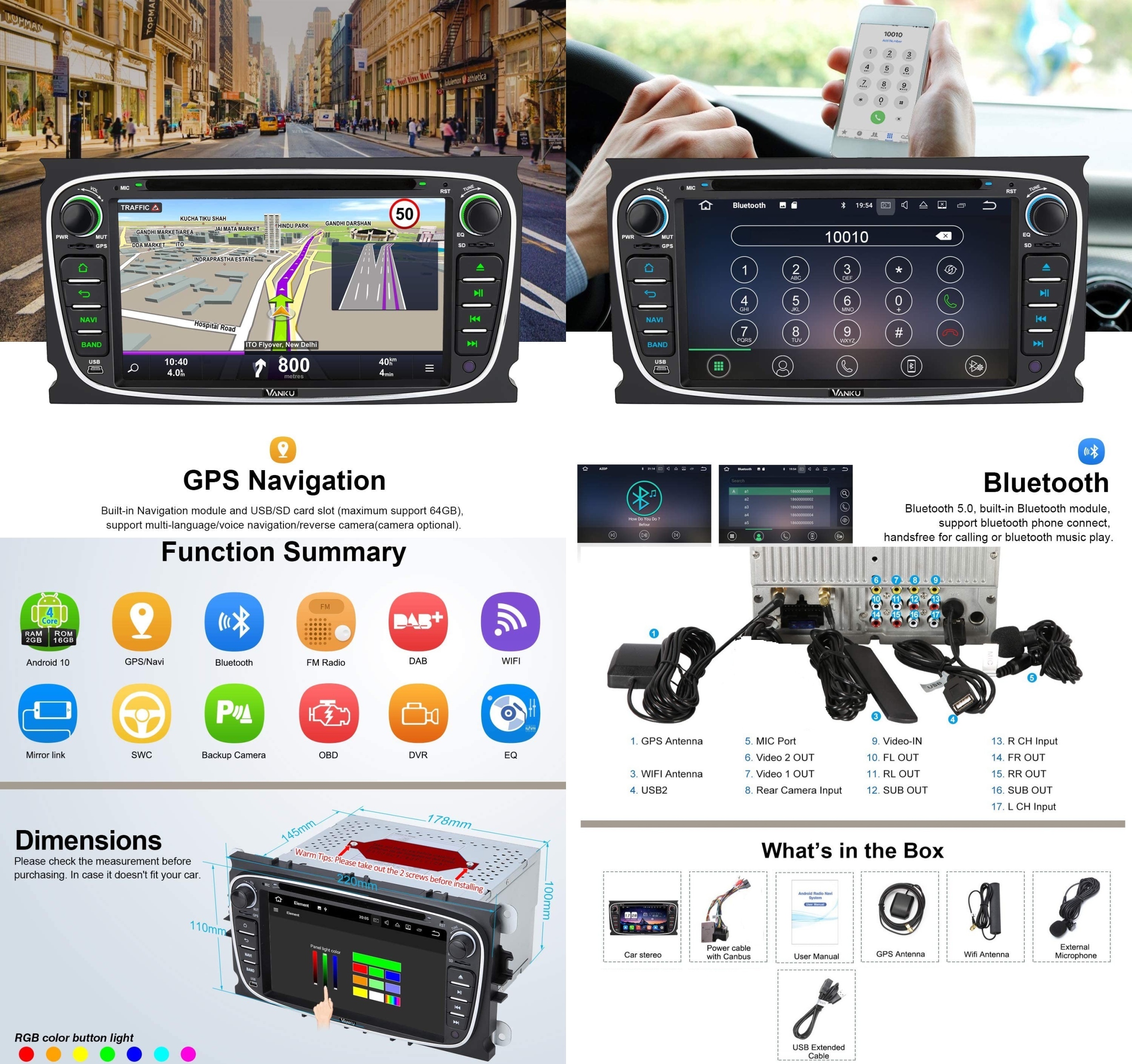 Автомагнитола VANKU 2DIN, модель AA0607B-A01, Внешний микрофон, GPS-антенна, WiFi-антенна, Кубики ISO + Кубики для автомобиля FORD< /b > в комплекте с силовым и акустическим кабелями, разъемом USB-кабеля, оригинальной упаковкой CAR VANKU. Руководство пользователя на английском и немецком языках.