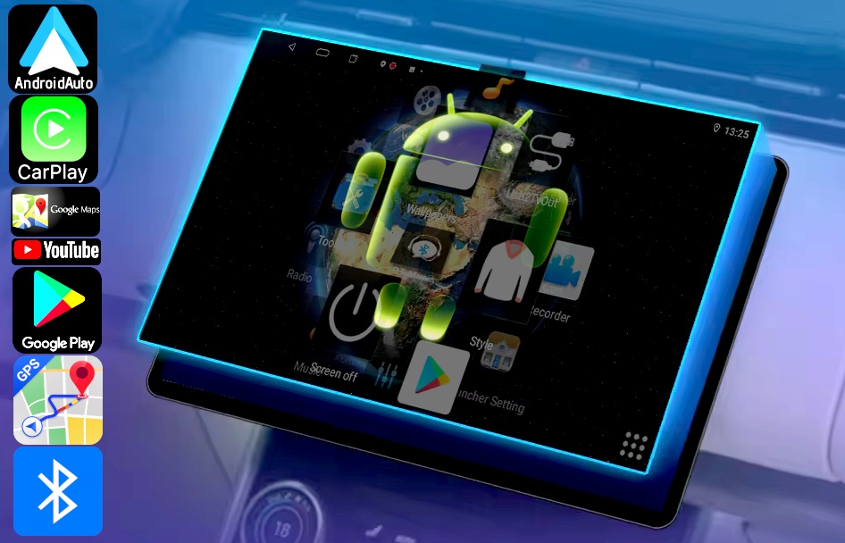 - МОБИЛЬНОЕ ПРИЛОЖЕНИЕ, РАЗРАБОТАННОЕ GOOGLE, ДЛЯ ОТРАЖЕНИЯ ФУНКЦИЙ ANDROID-УСТРОЙСТВА, НАПРИМЕР СМАРТФОНА, НА ПАНЕЛИ РАДИО. ПОДДЕРЖКА GOOGLE, SPOTIFY, YOUTUBE MAP