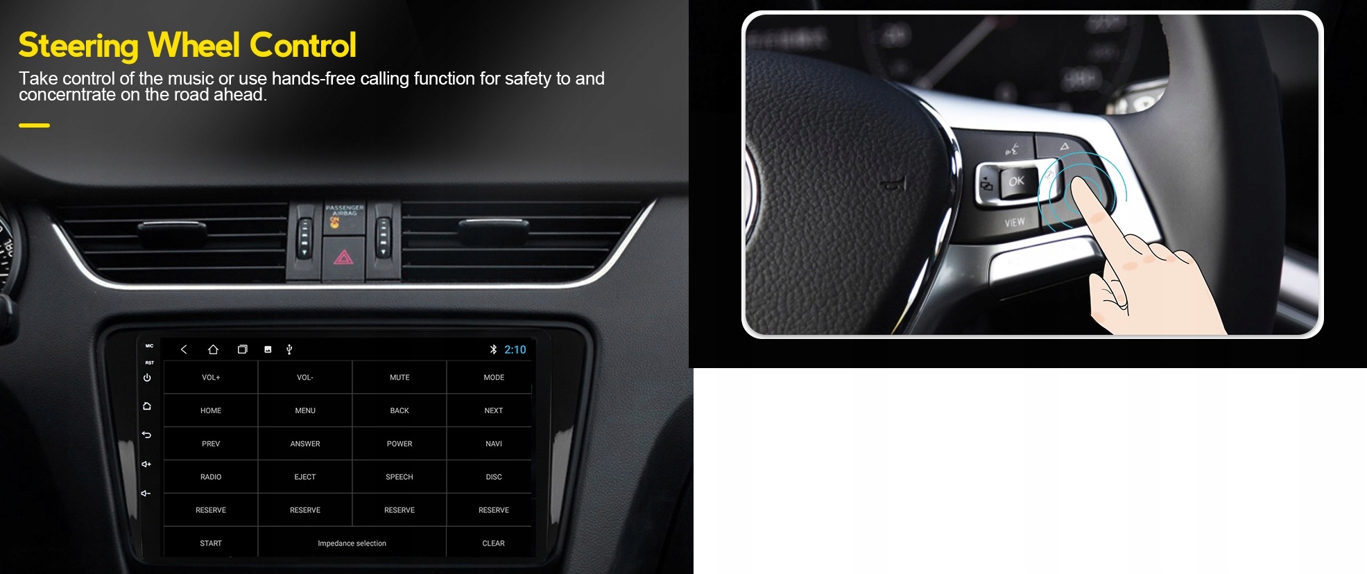 - Управление с помощью рулевого колеса — один из основные и желаемые функции. Радионавигационная система без проблем поддерживает заводское управление магнитолой с руля. В большинстве моделей управление рулем осуществляется по CAN-шине (цифровой), поэтому даже ничего настраивать не нужно, сигналы автоматически доходят до автомобиля от магнитолы. В других моделях (без CAN) для изучения ключей достаточно воспользоваться дружелюбным и интуитивно понятным приложением – на это уходит буквально макс. 2 минуты!