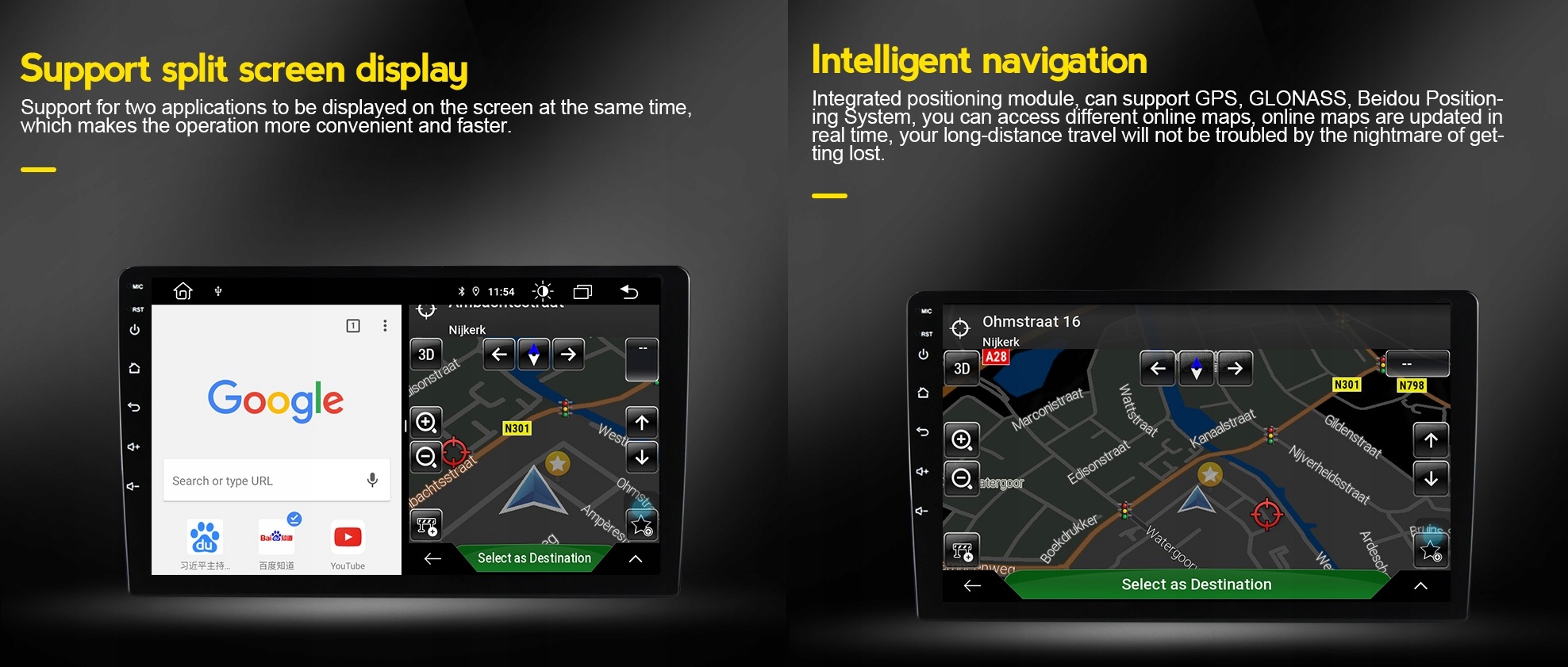 - GPS-навигация — теперь вы без проблем доберетесь до места назначения. Вы можете использовать оффлайн карты (они не требуют интернета) и онлайн без каких-либо ограничений. Перестаньте тратить деньги на постоянные обновления, лицензии и т. д. Начните использовать бесплатные и всегда актуальные навигационные системы, такие как Google Maps, Waze, HERE We Go, Be-On-Road и т. д. программы можно установить непосредственно из магазина Google Play или из установочных файлов Android .apk с SD-карты или USB-накопителя.