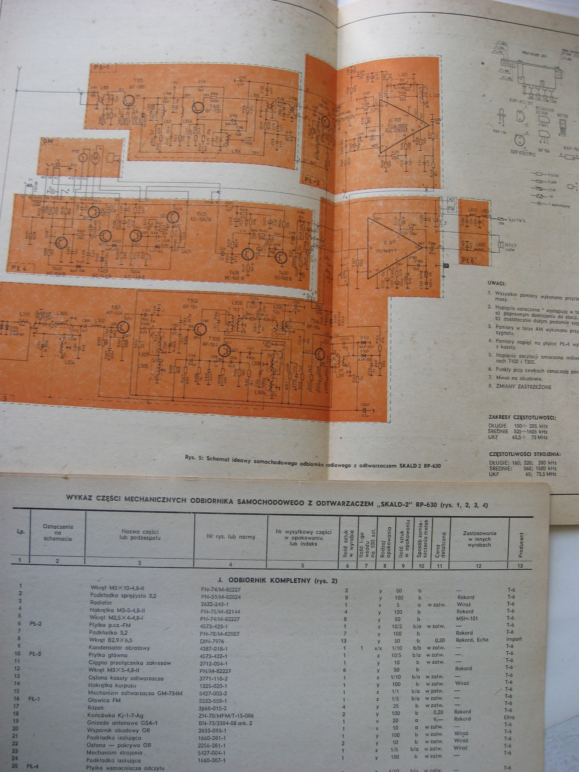 Радиоприемник с плеером СКАЛД 2 RP-630 - Сервисная инструкция Перечень запасных частей, каталог сборки, принципиальная схема и другие диаграммы - UNITRA DIORA