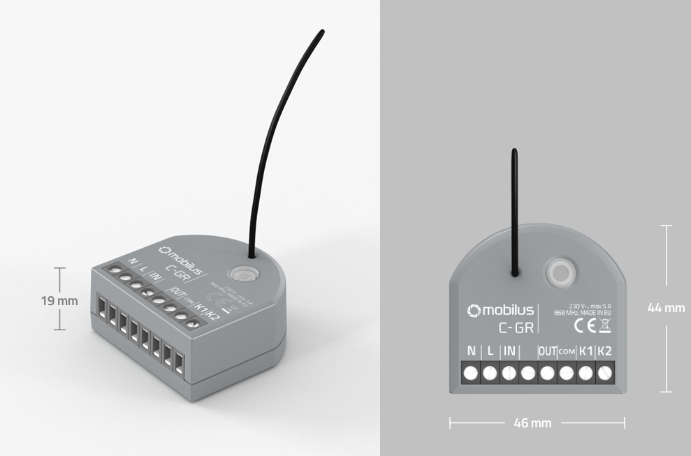 MOBILUS C-GR - радиомодуль, предназначенный для управления въездными или гаражными воротами, оснащенными электроприводом.