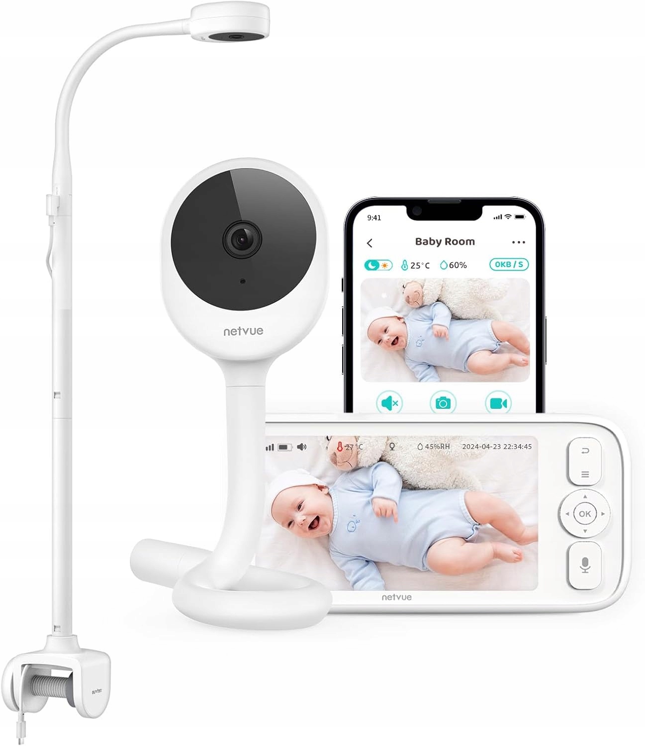 NETVUE Peekababy — радионяня с камерой и ночным видением, умная радионяня с камерой и звуком, держатель 4 в 1, ЖК-экран 15,2 см, распознавание плача, анализ сна, двусторонний разговор (белый).