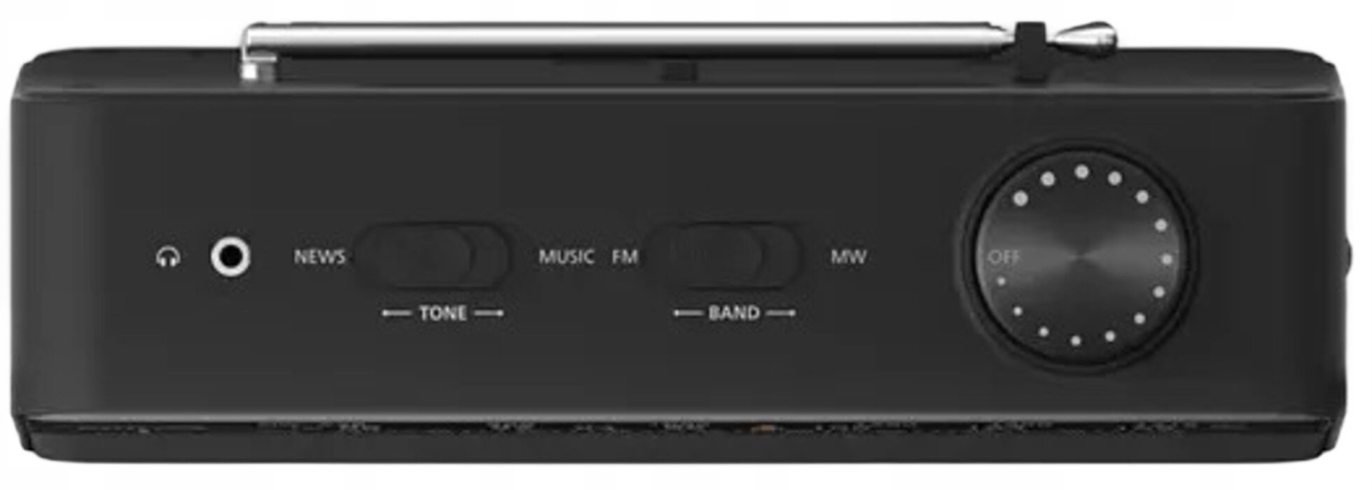 Вам не придется искать регулятор громкости на этом радио! Помимо большой ручки регулировки громкости, радио имеет расположенные сверху переключатели для переключения между сигналами FM/AM и режимами звука. Радио также оснащено портом для наушников, обеспечивающим конфиденциальность во время прослушивания.
