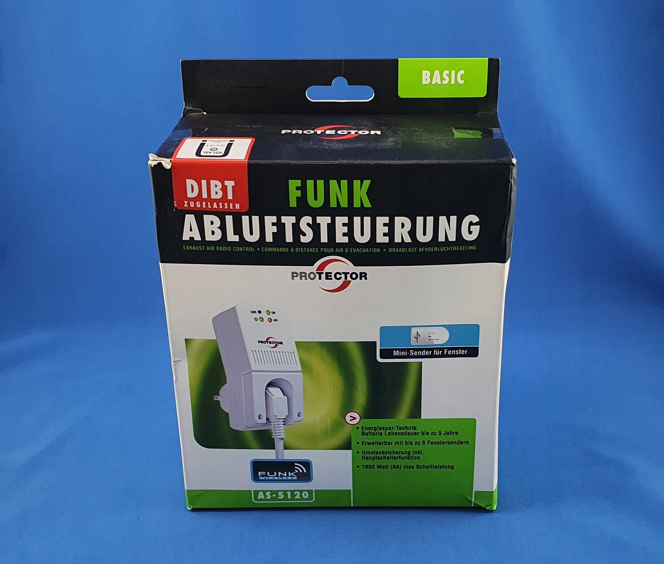 Однако важно самостоятельно следить за тем, чтобы подача свежего воздуха не заменялась, а только поддерживалась. Funk Protector AS-5120 DiBt включает вытяжную систему только тогда, когда достигается компенсация давления путем открытия окна или двери. Радиоуправление вытяжкой воздуха может быть расширено дополнительными передатчиками и работать до 6 оконных передатчиков.