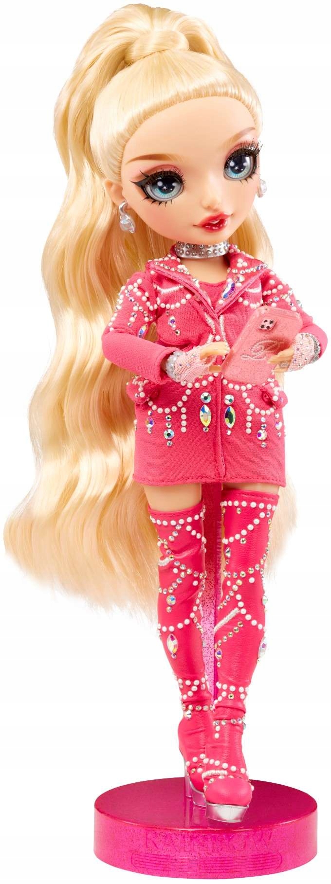 - Потрясающие волосы: ее волосы столь же потрясающие, как и ее наряды; У него очень длинные светлые волосы, которые можно расчесывать, достигая коленей. Она стилизована в высоком хвостике, чтобы показать свои замечательные серьги из горного кристалла и кофера. Удивительный. Итак, конечно, кукла нашего коллекционера Пэрис Хилтон доставлена ее собаке. Мы представляем первого питомца в Rainbow High! Это не только очень очаровательно, но и идеальное дополнение к каждой моднице.