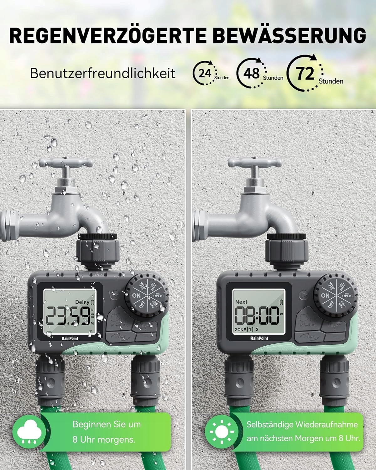 Rainpoint ITV201P Двойной водопровод Timer Timer Controller 2 зоны