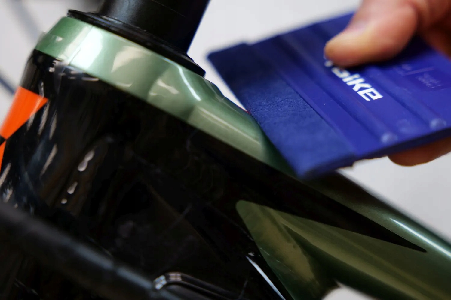Ракель – незаменимый помощник при нанесении защитной пленки. Он позволяет избавиться от пузырьков воздуха, образующихся между фольгой и рамой велосипеда. Облегчает и ускоряет крепление велосипеда.