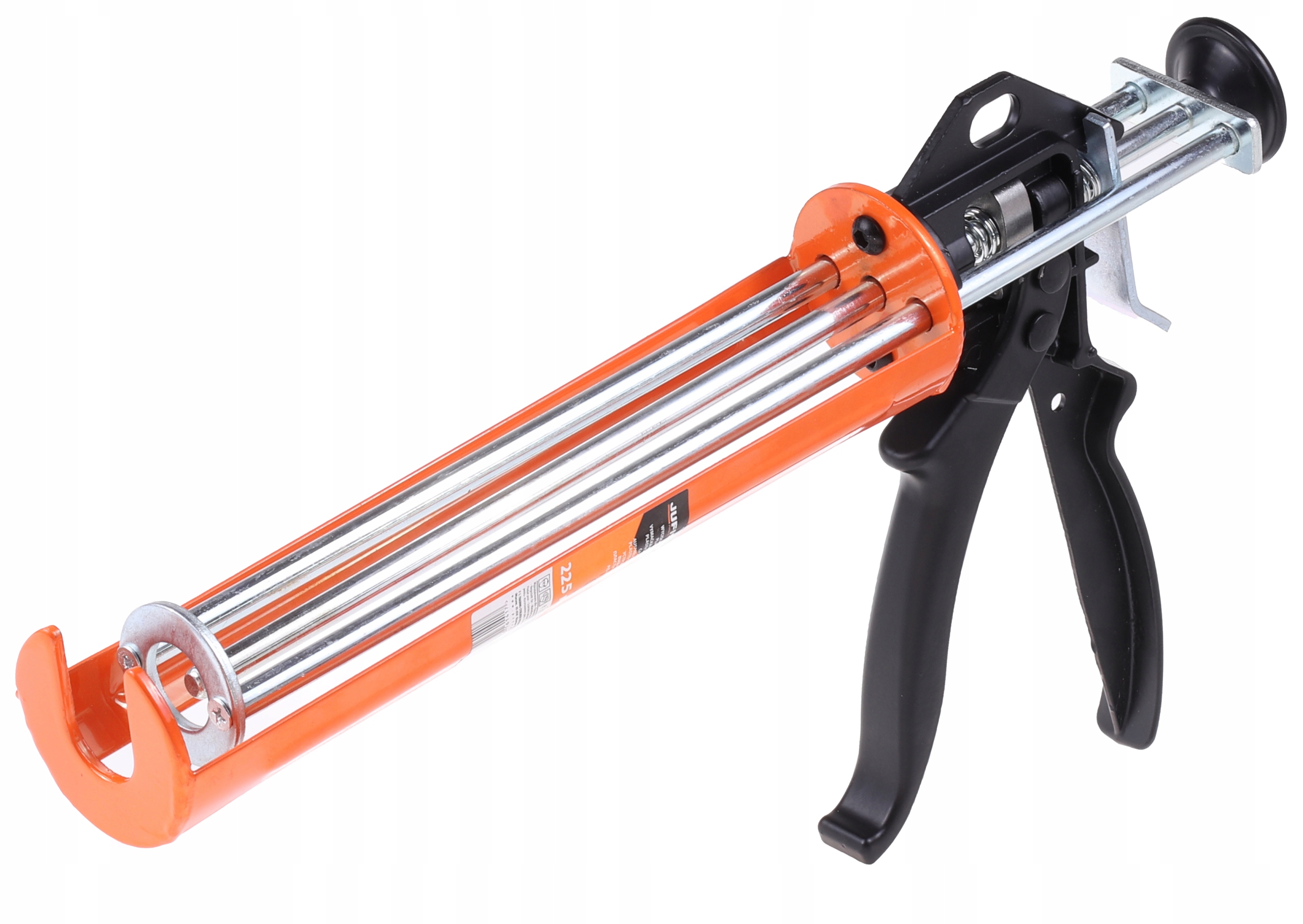 Надежный пластиковый пистолет из листовой стали. Прочная и прочная конструкция, дополнительно усиленная продольным тиснением. Предназначен для работы с типовыми тюбиками емкостью 280 – 310 мл.