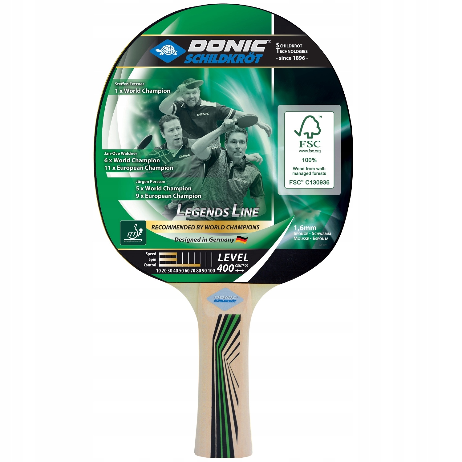 Ракетка для настольного тенниса DONIC Legends 400 FSC предназначена для игроков-любителей, предпочитающих техничную игру.