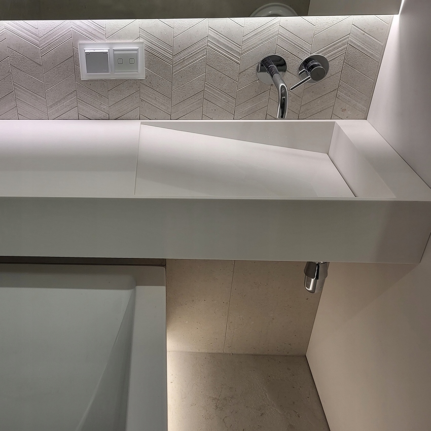 - >Низкая восприимчивость к повреждениям. Благодаря наличию акриловой смолы в композитном материале он более гибкий, чем, например, керамика, популярная в ванных комнатах, и, следовательно, менее подвержен трещинам или сколам.
