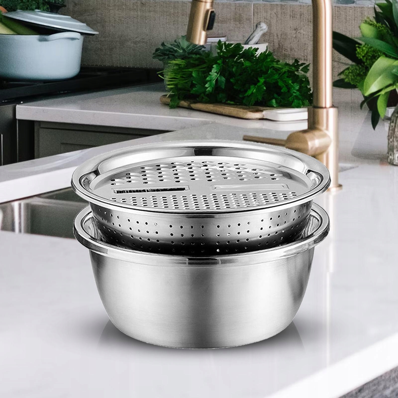 Складируемая и компактная конструкция для очистки и нарезки фруктов и овощей, сетчатая корзина для дренаж и внешняя чаша для сбора жидкости и воды.