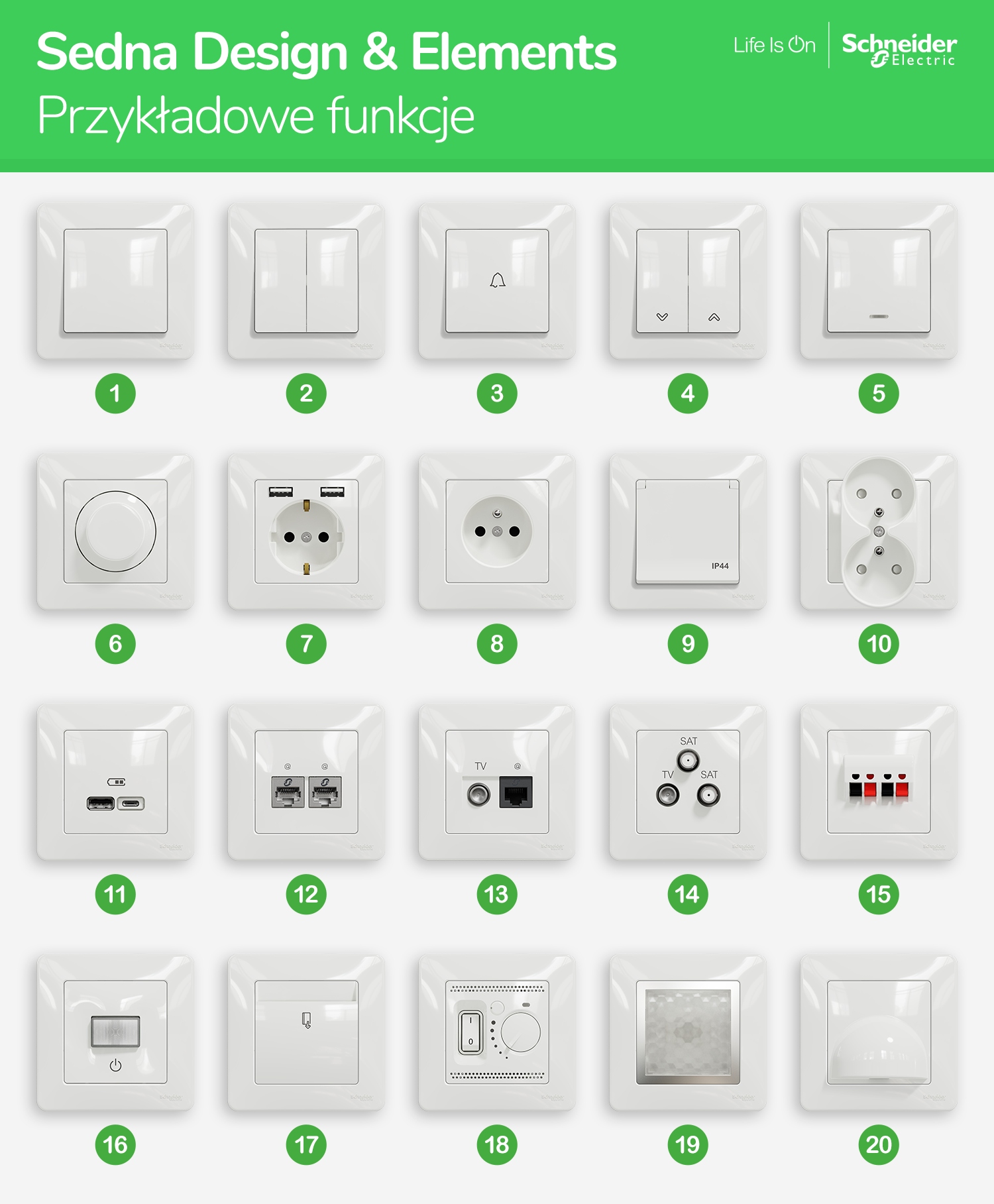 Sedna Design & Elements – Широкий функционал и современные решения Sedna Design & Elements – это новая серия инновационных разъемов и розеток с изысканным внешним видом. В ее предложение входят интеллектуальные решения, которые значительно повысят ваш комфорт и обеспечат безопасность. К ним относятся: устройства для управления освещением, жалюзи, температурой.