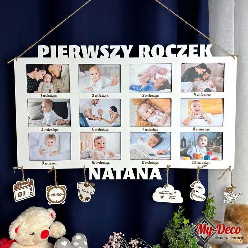 Рамка на 12 фото Подарок на первый год. Мы знакомим вас с миром необыкновенной рамки для 12 фотографий, которая сохранит воспоминания о первом году жизни вашего ребенка и станет прекрасным украшением любой детской комнаты.