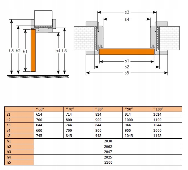 s3 - внешняя ширина дверной коробки