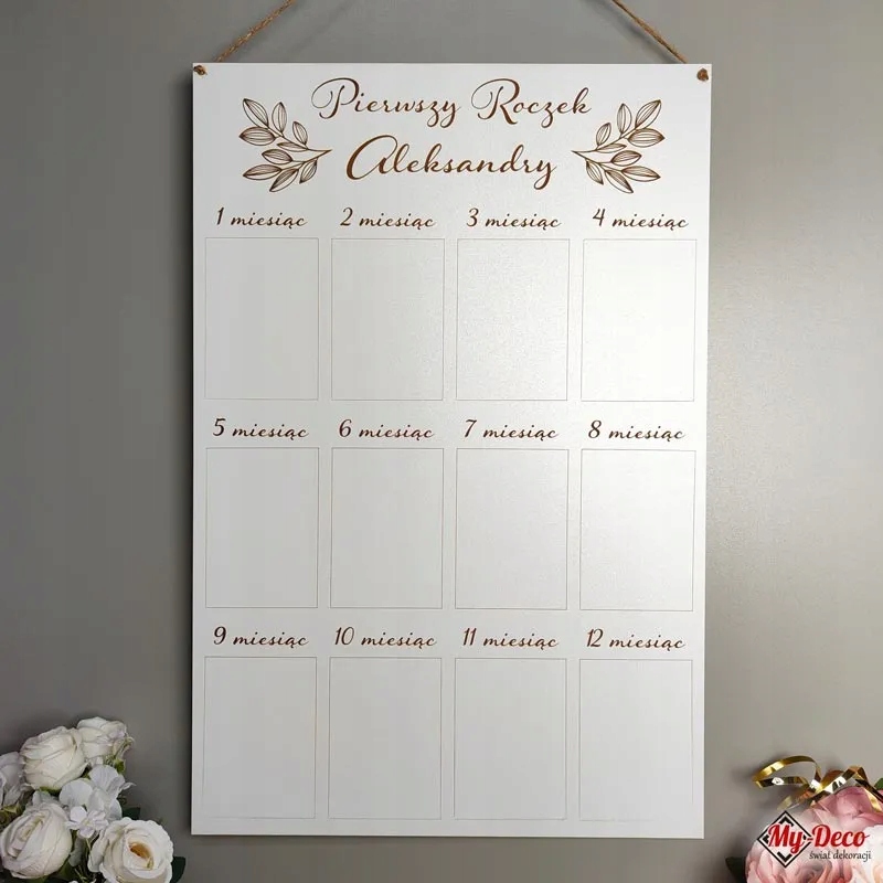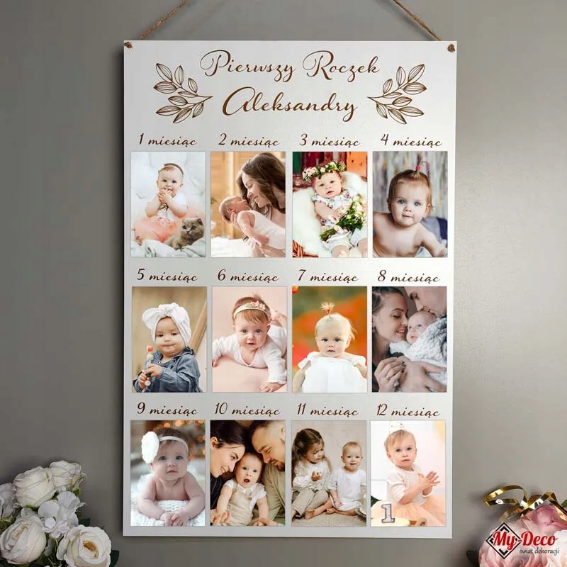 Рамка-доска на 12 фотографий «Первый год с именем» — это уникальный способ почтить первые мгновения жизни вашего ребенка. Закажите сегодня и создайте уникальный сувенир на долгие годы!