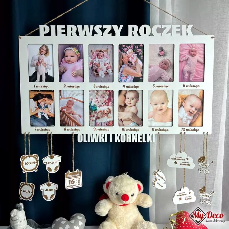 Представьте милый декоративный элемент и сувенир с первого года жизни вашего маленького сокровища благодаря нашей уникальной рамке для 12 фотографий для близнецов. Это волшебное путешествие по первым 365 дням жизни ваших малышей, наполненное улыбками, впечатлениями и незабываемыми моментами. Наша рамка позволит вам увековечить эти прекрасные моменты и создать сувенир, который будет радовать ваши сердца долгие годы.