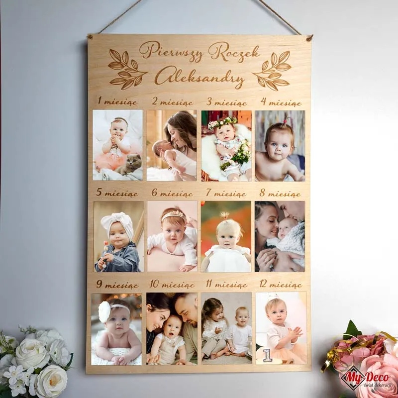 Ramka Tablica na 12 zdjęć Pierwszy Rok z imieniem