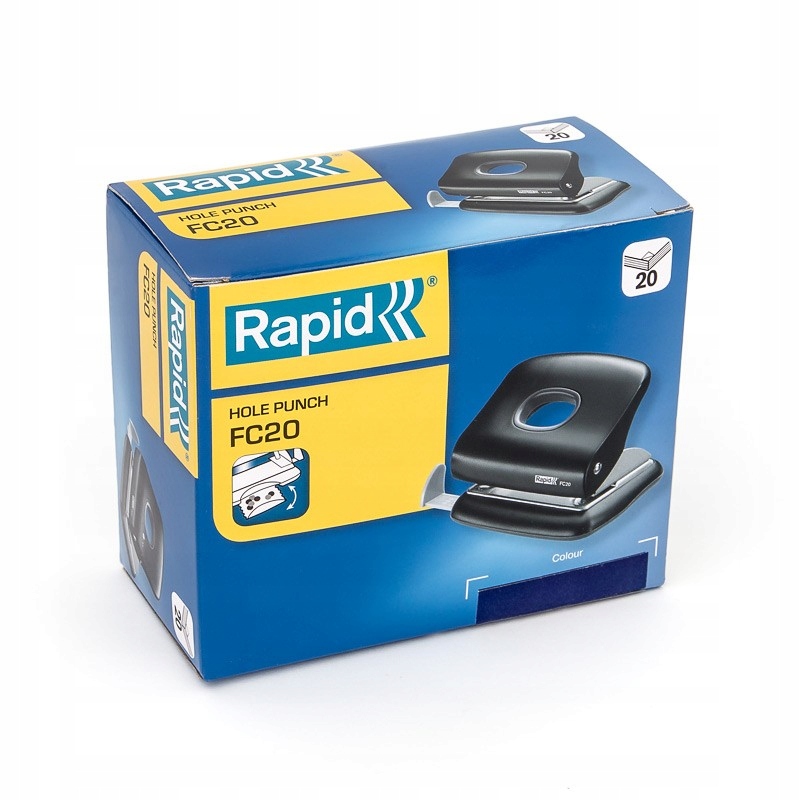 Модный дырокол Rapid FC20 из армированного АБС-пластика, металлическая конструкция.
