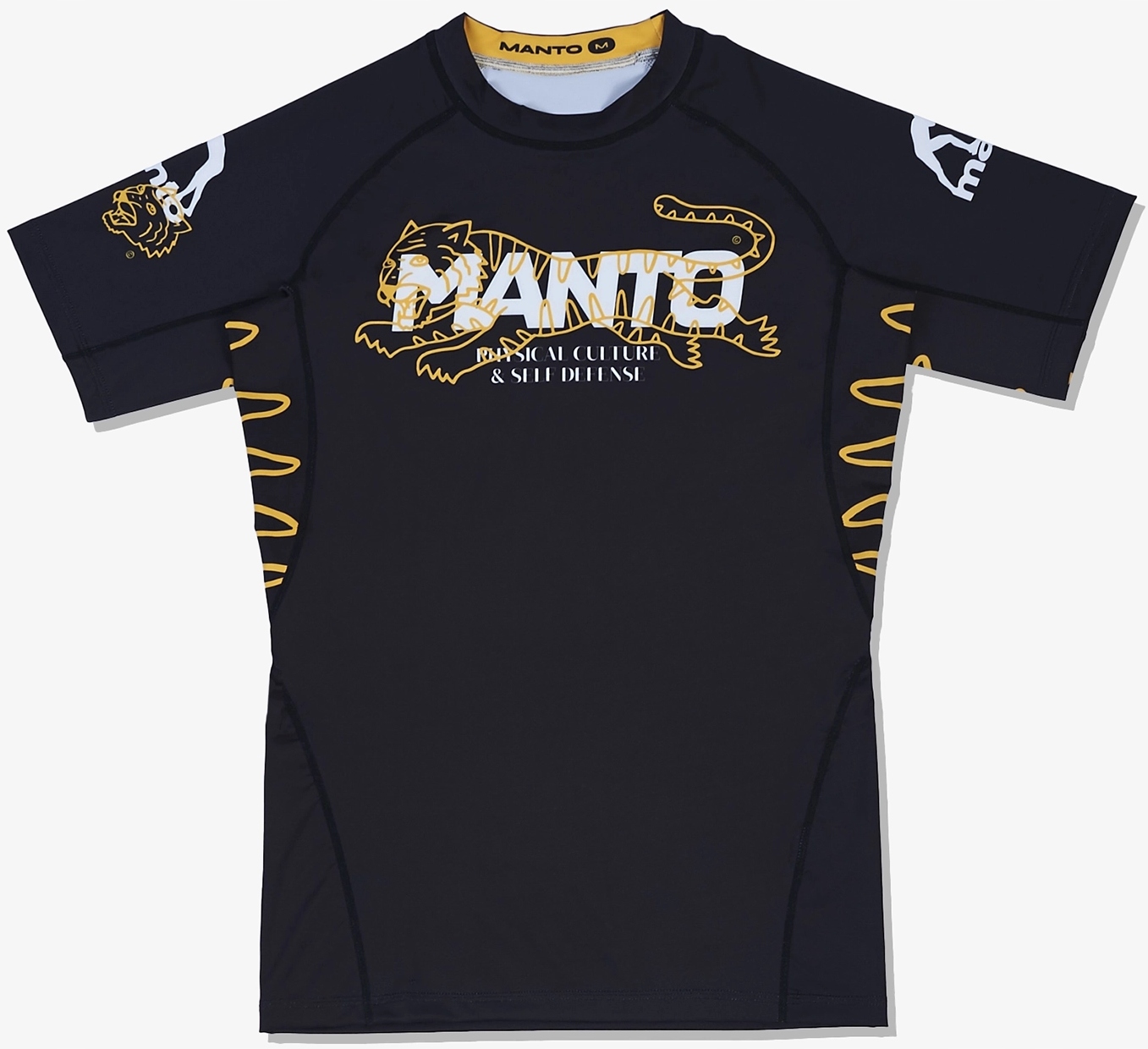 Представляем классический черный рашгард MANTO WILDCAT с короткими рукавами. Изготовлен из качественной, воздушной, дышащей ткани с высокой эластичностью. Современная конструкция из 6 панелей сшита плоскими эластичными швами, поэтому вы будете чувствовать себя комфортно при каждом движении, не беспокоясь о потертостях кожи. Рашгард MANTO WILDCAT с короткими рукавами идеально сидит по фигуре и хорошо прилегает к телу, поэтому не смещается во время тренировок и идеально подходит для занятий боевыми искусствами. Черный рашгард MANTO WILDCAT украшен прочным, несмываемым сублимационным принтом с изображением тренировочной комнаты.