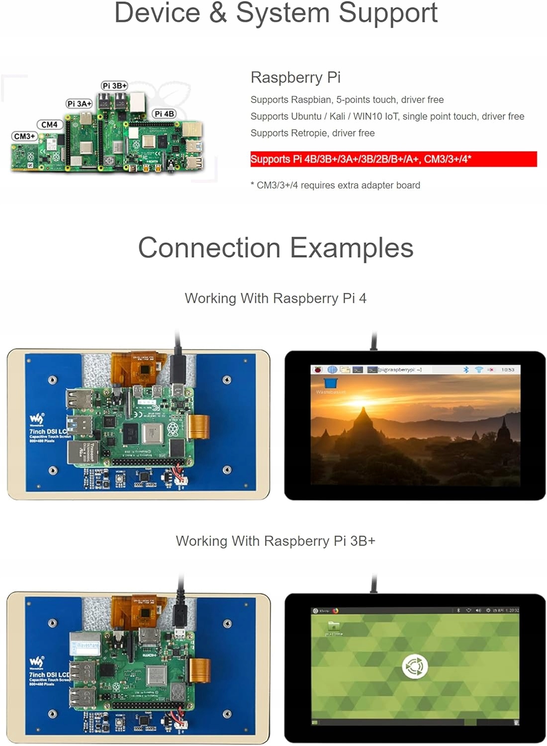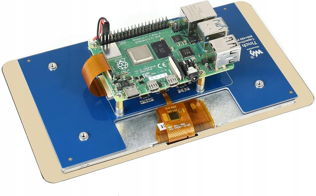 Waveshare 7-дюймовый ЖК-дисплей DSI 800 x 480 сенсорный TFT-экран для Raspberry Pi 4B/3B+/3A+/3B/2B/B+/A+, емкостная сенсорная панель из закаленного стекла, до 5 точек касания